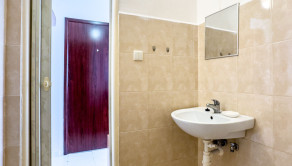 Dispozícia: zádverie, kuchyňa, obývacia izba, kúpeľňa s umývadlom, sprchovým kútom a toaletou.